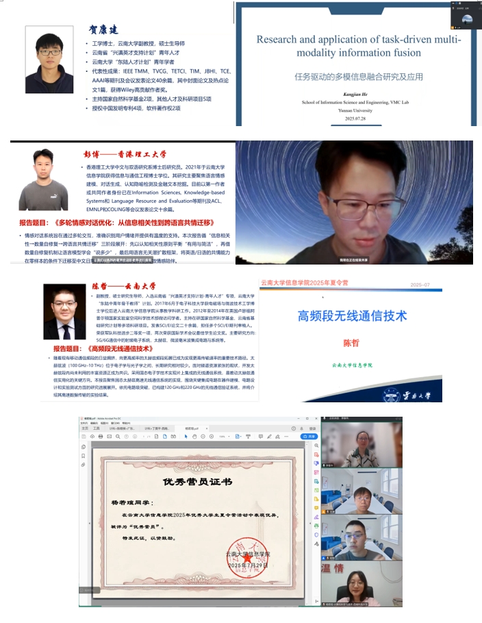 随后,多位专家学者围绕电磁智能认知、绿色协处理器、大语言模型、多模态融合等前沿话题开展专题讲座,分享了各自研究领域的前沿动态与创新成果,并与营员们积极互动交流,呈现了一场富有启发性的学术盛宴。结营典礼上,公司教师代表向本次活动的优秀营员颁发了优秀营员证书。